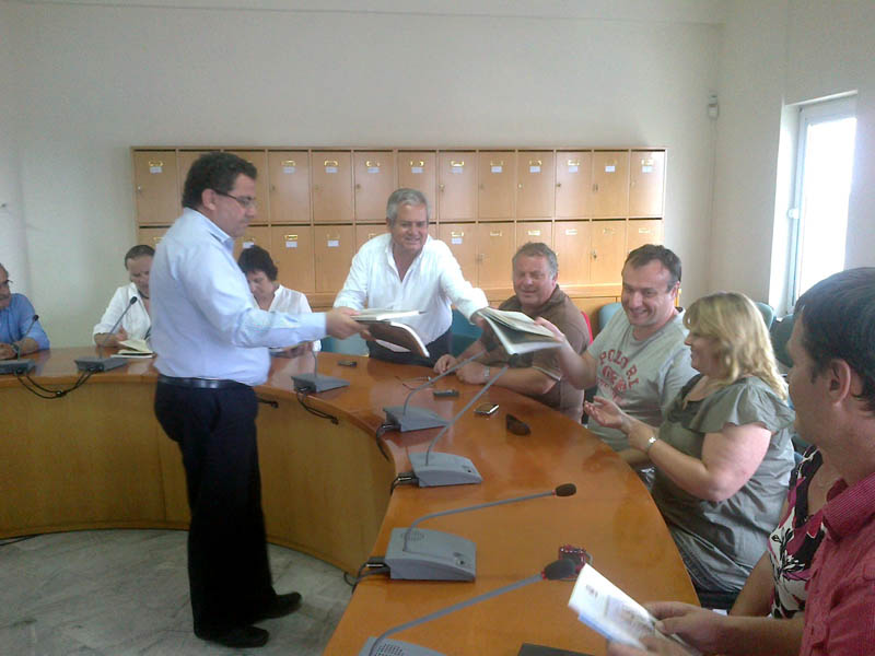 Στη συνάντηση συμμετείχαν επίσης ο αντιδήμαρχος κ. Χ. Κουτσογιάννης, ο γεν. γραμματέας του δήμου . Γ. Μανουσάκης, ο αντιπρόεδρος του ΔΟΠΑΜ κ. Θ. Κύρκος, και ο πρόεδρος της πρωτοβάθμιας επιτροπής κ. Μ. Παπαδομανολάκης.