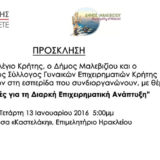 Με ιδιαίτερη χαρά σας προσκαλούμε στην Εσπερίδα με τίτλο “Στρατηγικές για τη Διαρκή Επιχειρηματική Ανάπτυξη”, η οποία θα πραγματοποιηθεί την Τετάρτη 13 Ιανουαρίου 2016, στις 17:00, στην αίθουσα “Καστελάκη” του Επιμελητηρίου Ηρακλείου.