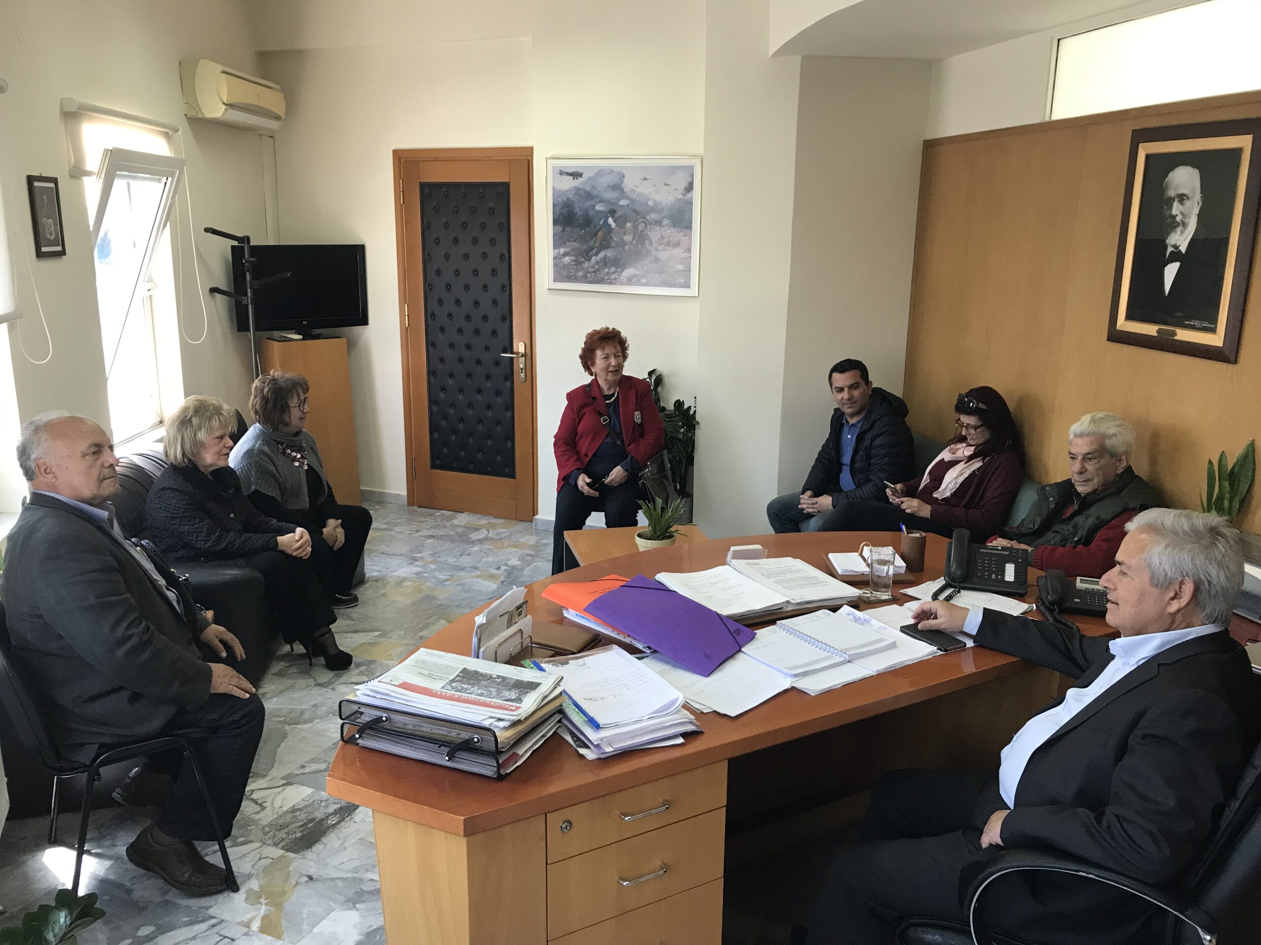 Στη συνάντηση συμμετείχαν επίσης η Πρόεδρος της Πρωτοβάθμιας Σχολικής Επιτροπής και Γραμματέας του Δ.Σ. Μαλεβιζίου Άννα Φραντζεσκάκη και ο πρώτος δωρητής της Δημοτικής Βιβλιοθήκης Μαλεβιζίου Μιχάλης Δουλγεράκης.