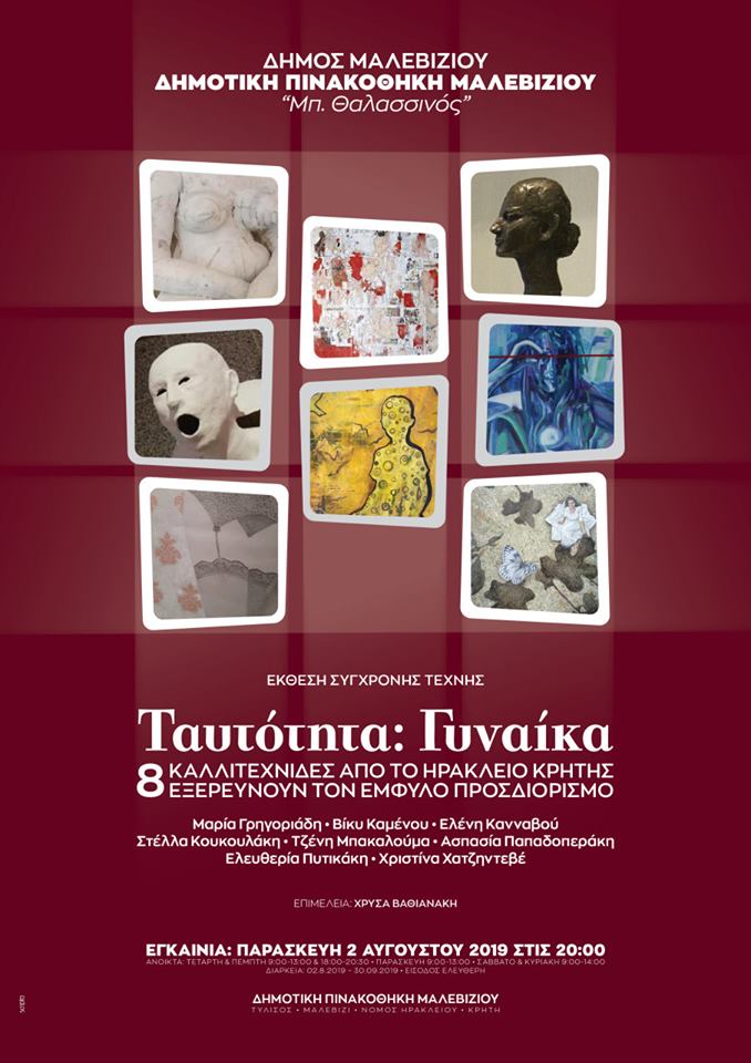 Η Δημοτική Πινακοθήκη Μαλεβιζίου «Μπότης Θαλασινός» στην Τύλισο, υποδέχτηκε με ιδιαίτερη χαρά και ενθουσιασμό την εικαστική έκθεση από το Μουσείο Σύγχρονης Τέχνης Χανίων – Ελαιουργείον: «Το Εκπληκτικό Φως της Ίδιας σου της Υπάρξεως! / 8+8 Γυναίκες Εξερευνούν την Έμφυλη Ταυτότητα». Παράλληλα, 8 καλλιτέχνιδες από το Ηράκλειο η Μαρία Γρηγοριάδη, η Βίκυ Καμένου, η Ελένη Κανναβού, η Στέλλα Κουκουλάκη, η Τζένη Μπακαλούμα, η Ασπασία Παπαδοπεράκη, η Ελευθερία Πυτικάκη και η Χριστίνα Χατζηντεβέ με το εικαστικό τους έργο αρθρώνουν λόγο και θέση για τον Έμφυλο Προσδιορισμό και συγκροτούν την ενότητα της έκθεσης: «Ταυτότητα: Γυναίκα / 8 Καλλιτέχνιδες από το Ηράκλειο Κρήτης εξερευνούν τον Έμφυλο Προσδιορισμό» σε επιμέλεια της Χρύσας Βαθιανάκη, καλωσορίζοντας ταυτόχρονα σε διάλογο το έργο 8 Ιρανών και 8 Ελληνίδων γυναικών της Τέχνης.