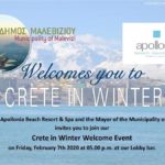 Τους πρώτους τουρίστες για τη χειμερινή περίοδο υποδέχεται αύριο Παρασκευή 7 Φεβρουαρίου ο Δήμος Μαλεβιζίου. Με αφορμή την άφιξη του πρώτου γκρουπ χειμερινών τουριστών ο Δήμος Μαλεβιζίου έχει προγραμματίσει δράση υποδοχής τους στο ξενοδοχείο Apollonia Beach Resort & Spa (Αμμουδάρα) στις 5:00μ.μ.