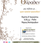 • Πέμπτη 27 Αυγούστου, στις 8:30 μ.μ. στον Πύργο των Καλλέργηδων, στη Ροδιά