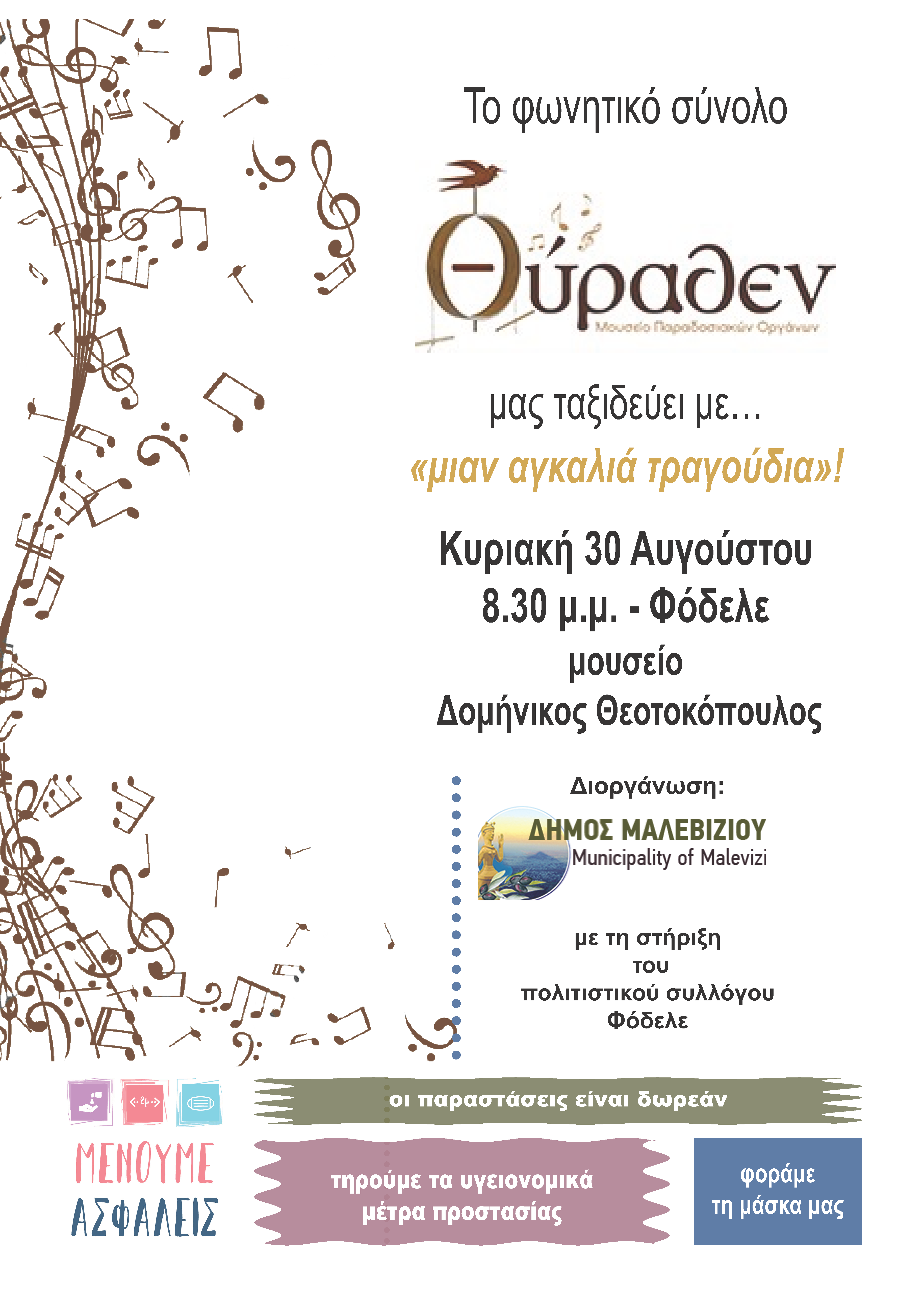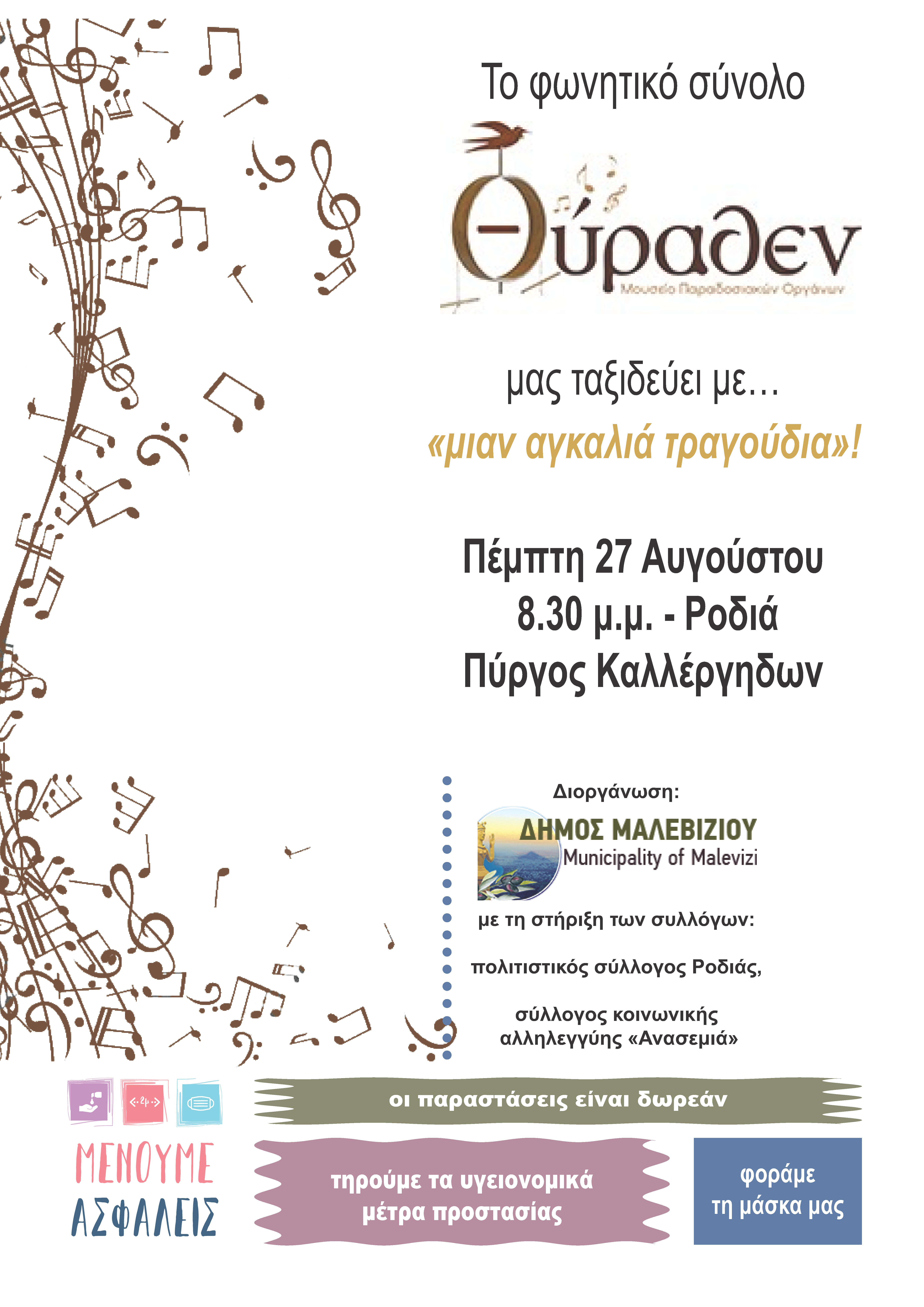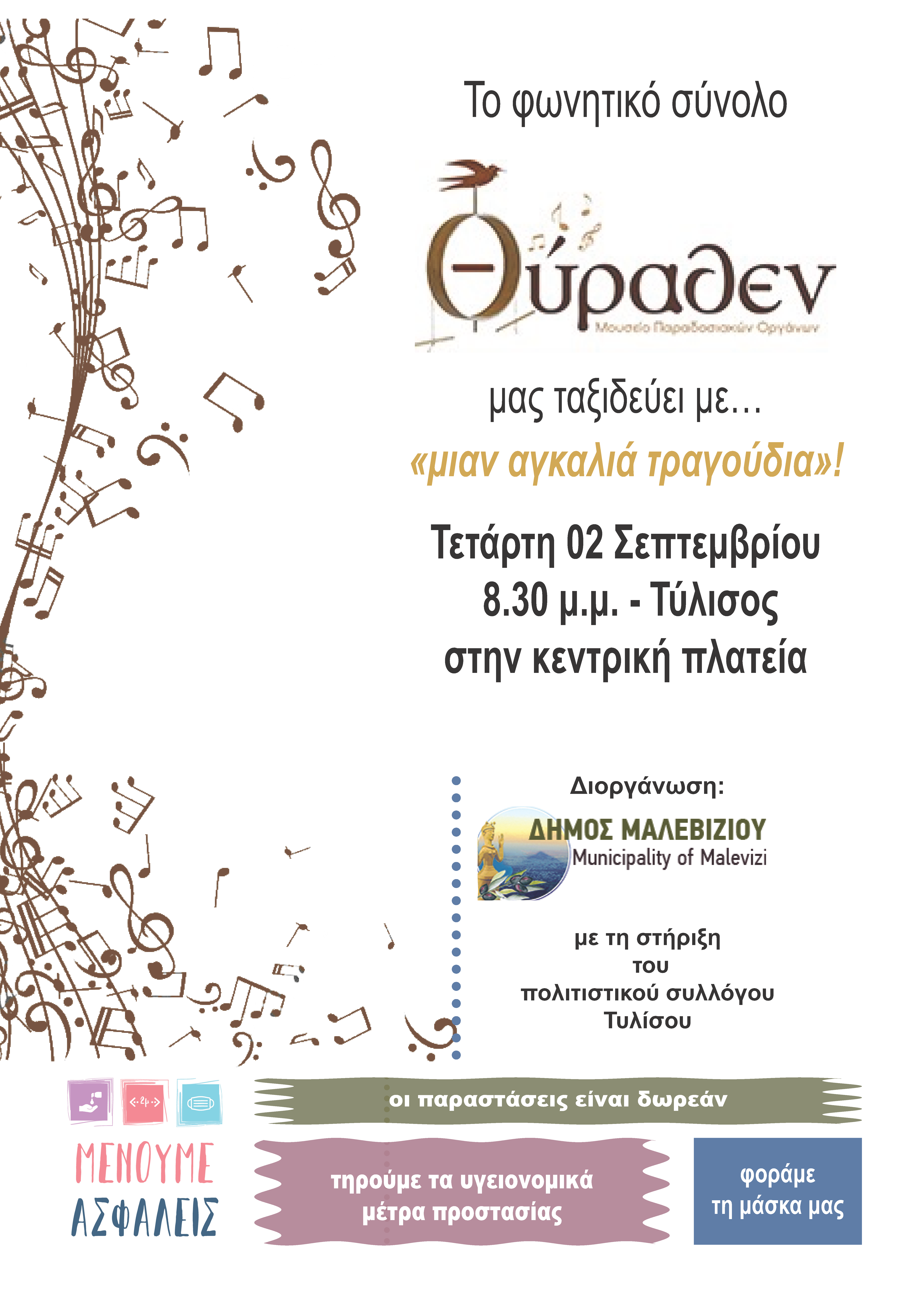 Το φωνητικό σύνολο ¨Θύραθεν¨ μας ταξιδεύει με «Μια αγκαλιά τραγούδια» δίνοντας τρεις μοναδικές παραστάσεις στο Δήμο Μαλεβίζιου.