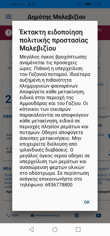 Έκτακτη ειδοποίηση πολιτικής προστασίας Μαλεβιζίου: