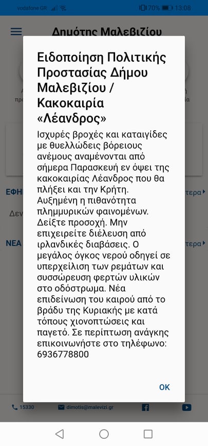 Υπό το συντονισμό του αρμόδιου Αντιδημάρχου Γιώργου Πετούση ολόκληρος ο μηχανισμός πολιτικής προστασίας του Δήμου Μαλεβιζίου βρίσκεται ήδη σε επιφυλακή. Τα μηχανήματα έργου -δημόσια και ιδιωτικά- έχουν τεθεί σε ετοιμότητα στη διάθεση της πολιτικής προστασίας, προκειμένου να αντιμετωπιστούν πιθανά προβλήματα που θα δημιουργηθούν από την εκδήλωση των φαινομένων.