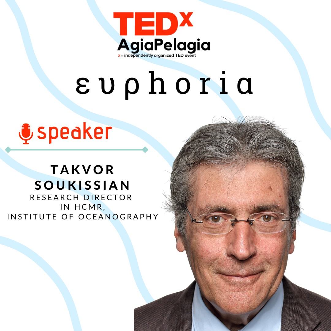 Πάμε να σας συστήσουμε τον επόμενο ομιλητή μας στο TEDxAgiaPelagia? Ο Τακβόρ Σουκισιάν είναι Διδάκτορας της Σχολής Ναυπηγών Μηχ/γων Μηχανικών του ΕΜΠ και Διευθυντής Ερευνών στο Ινστιτούτο Ωκεανογραφίας του Ελληνικού Κέντρου Θαλασσίων Ερευνών. Από το 2018 διδάσκει το μάθημα “Εισαγωγή στις ανανεώσιμες πηγές ενέργειας από τη θάλασσα” στο πρόγραμμα μεταπτυχιακών σπουδών “Θαλάσσια Επιστήμη και Τεχνολογία”, που διοργανώνει η Σχολή Ναυπηγών Μηχ/γων Μηχανικών του ΕΜΠ. Τα τρέχοντα ερευνητικά του ενδιαφέροντα περιλαμβάνουν τη μελέτη των θαλάσσιων ανανεώσιμων πηγών ενέργειας (με έμφαση στην υπεράκτια αιολική, ηλιακή και κυματική ενέργεια) και τη στοχαστική μοντελοποίηση και πρόβλεψη ωκεάνιων χαρακτηριστικών. Είναι κριτής σε πάνω από 30 διεθνή επιστημονικά περιοδικά και συγγραφέας περισσότερων από 120 επιστημονικών δημοσιεύσεων σε περιοδικά και διεθνή συνέδρια. Είναι επίσης συντονιστής του Ελληνικού Κόμβου Γαλάζιας Ενέργειας.