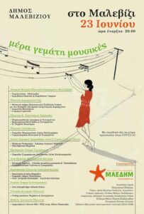 Μέρα γεμάτη Μουσικές θα είναι η Τετάρτη στο Δήμο Μαλεβιζίου. Μία μέρα που όλοι οι δρόμοι της Μουσικής οδηγούν στο Μαλεβίζι και στις εκδηλώσεις με αφορμή την Παγκόσμια Ημέρα Μουσικής.