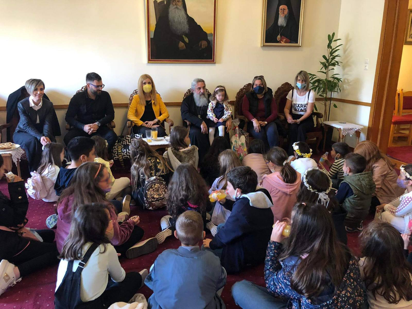 Τα κάλαντα του Λαζάρου έψαλλαν στον Αρχιεπίσκοπο Κρήτης παιδιά από το Κέντρο Δημιουργικής Απασχόλησης Παιδιών Γαζίου με τον κ Ευγένιο να μην κρύβει τη χαρά του για την παρουσία των παιδιών στο Αρχιεπισκοπικό Μέγαρο.