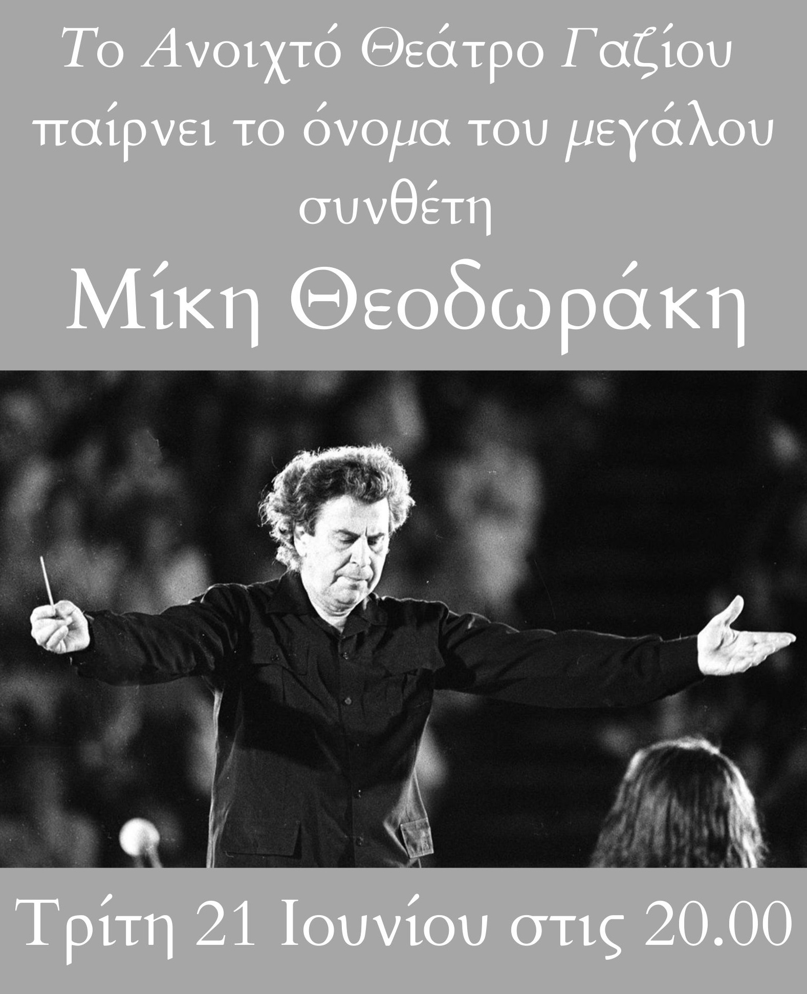 Το όνομα του Μίκη Θεοδωράκη στο Δημοτικό Θέατρο Γαζίου