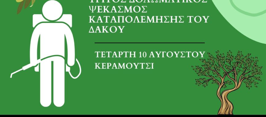Παρακαλούνται όσοι ελαιοπαραγωγοί έχουν περιφραγμένα ελαιόφυτα να μεριμνήσουν ώστε ο εργολάβος ψεκασμού να έχει πρόσβαση στα δένδρα τους για να μπορεί να τα ψεκάσει και οι βιοκαλλιεργητές να σημαδέψουν τα ελαιόφυτά τους για να αποφευχθεί ανεπιθύμητος ψεκασμός.