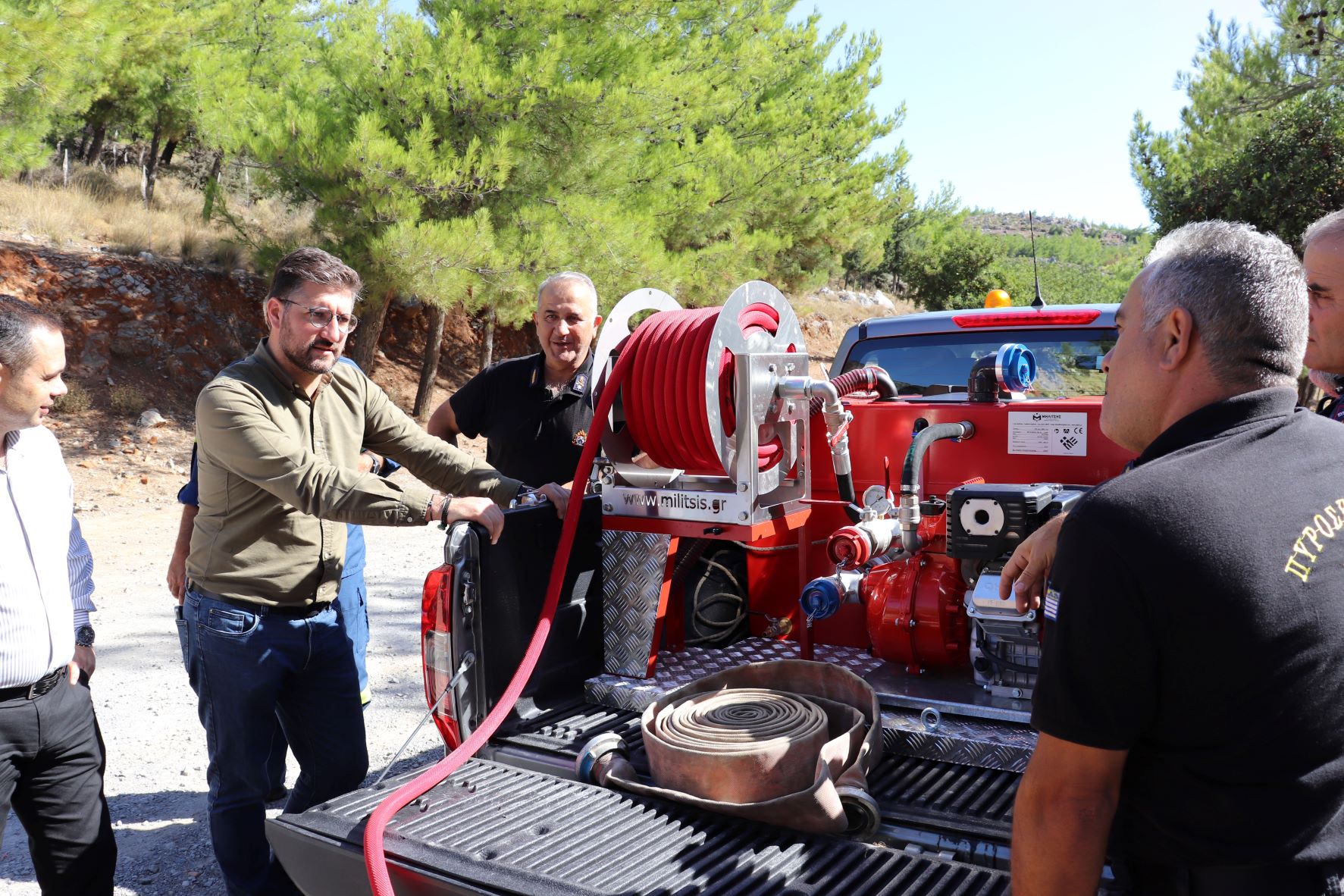 «Με δύο νέα πυροσβεστικά συγκροτήματα μεγαλώνουμε την ασπίδα πολιτικής προστασίας στο Δήμο Μαλεβιζίου! Δωρεά του ΑΔΜΗΕ και της ΑΡΙΑΔΝΗ Interconnection, μέσα από το πακέτο των ανταποδοτικών οφελών προς το Δήμο για το Μεγάλο Καλώδιο. Με νέα όπλα στη μάχη κατά της εκδήλωσης πυρκαγιάς, ενισχύουμε τους χειριστές μας, τις τοπικές κοινωνίες και τους εθελοντές. Συντονίζουμε δυνάμεις με την Πυροσβεστική Υπηρεσία και στρέφουμε την προσοχή μας στην πρόληψη. Στην Κέρη σήμερα με τους Διοικητές Πυροσβεστικών Υπηρεσιών Κρήτης και Ηρακλείου Γιώργο Τσικαλά και Μιχάλη Σεληνιωτάκη για την εκπαίδευση των στελεχών μας στη χρήση των αντλιών. Μπροστά σε ένα ενδεχόμενο πύρινο μέτωπο, φροντίζουμε να έχει εκ των προτέρων στηθεί ένα άλλο, ανθρώπινο.», ανέφερε ο Δήμαρχος Μαλεβιζίου Μενέλαος Μποκέας με αφορμή την παρουσίαση των δύο πυροσβεστικών συγκροτημάτων που παρουσιάστηκαν στα στελέχη της Πυροσβεστικής Υπηρεσίας στην Κέρη.