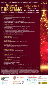 Ένα πλούσιο πρόγραμμα με μουσική, χορό, θέατρο αλλά και πολλές δράσεις για τα παιδιά περιλαμβάνουν οι εορταστικές εκδηλώσεις που έχει προγραμματίσει ο Δήμος Μαλεβιζίου για την περίοδο των Χριστουγέννων