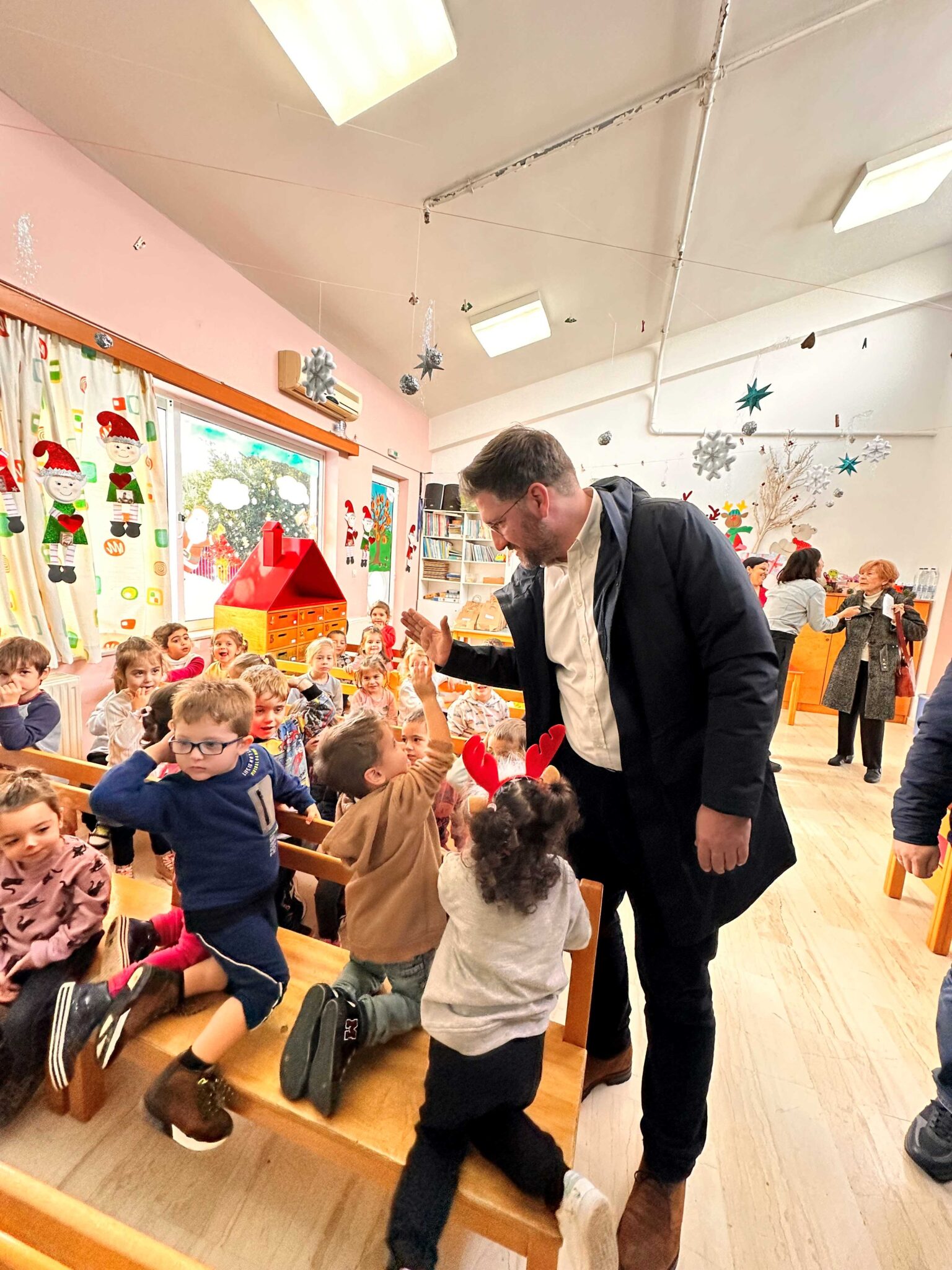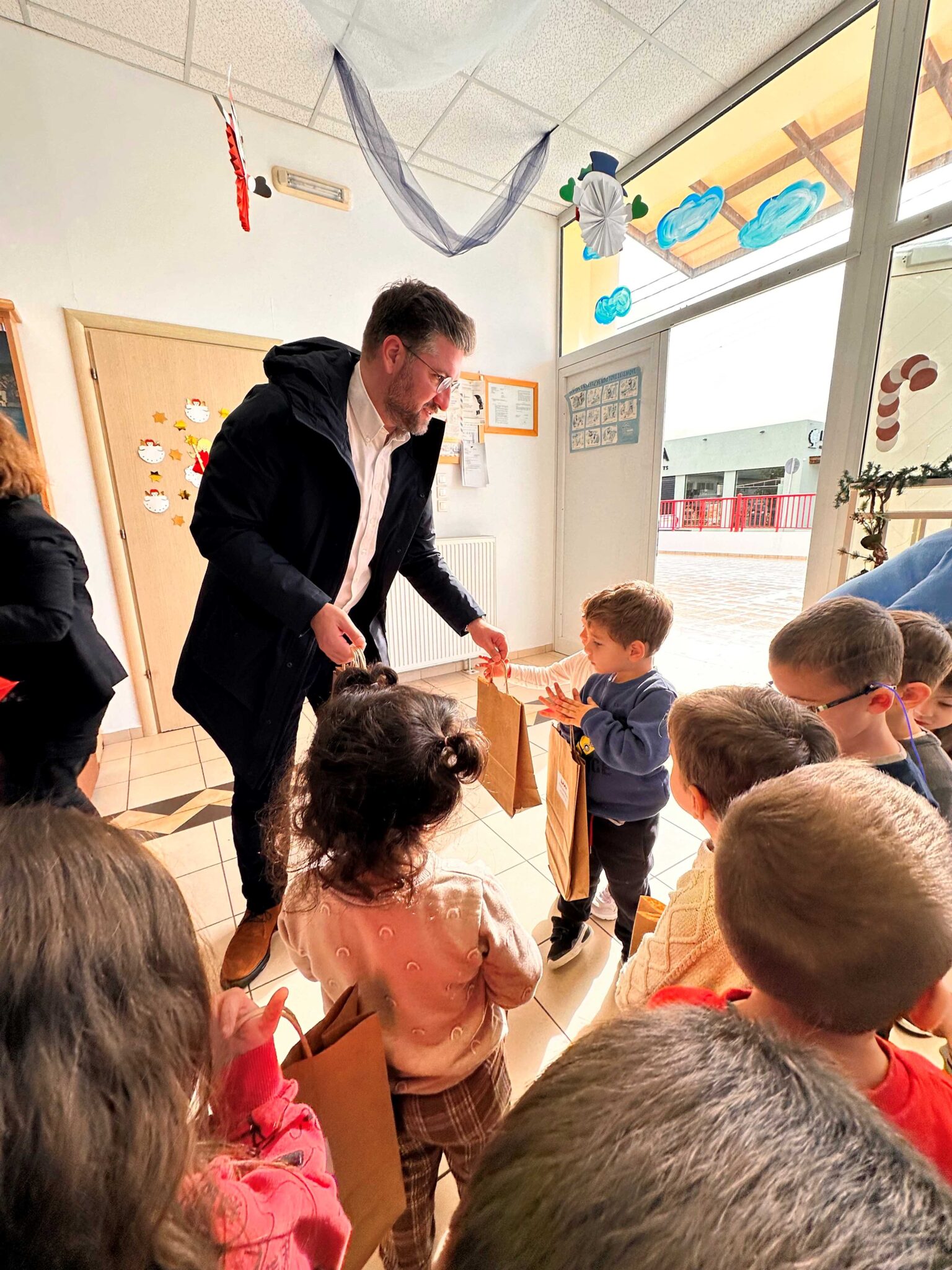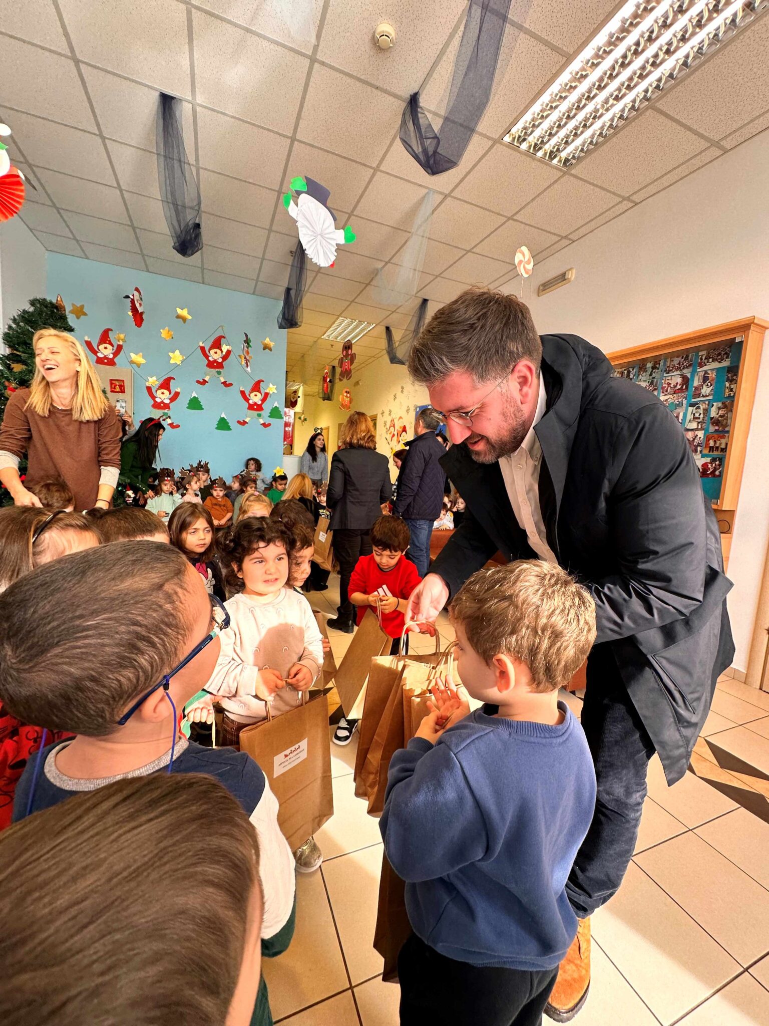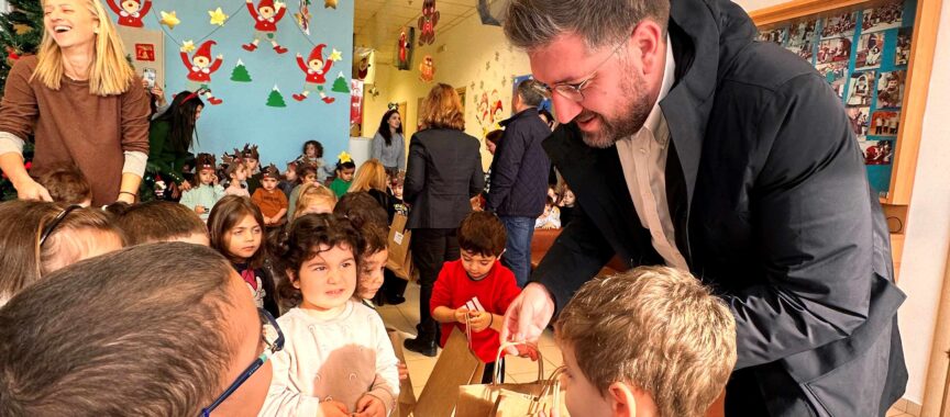 Ο Μενέλαος Μποκέας επισκέφτηκε επίσης τον 1ο Παιδικό Σταθμό Γαζίου όπου μοίρασε δώρα στα παιδιά και αντάλλαξαν, μαζί με τους αντιδημάρχους, ευχές με το προσωπικό.