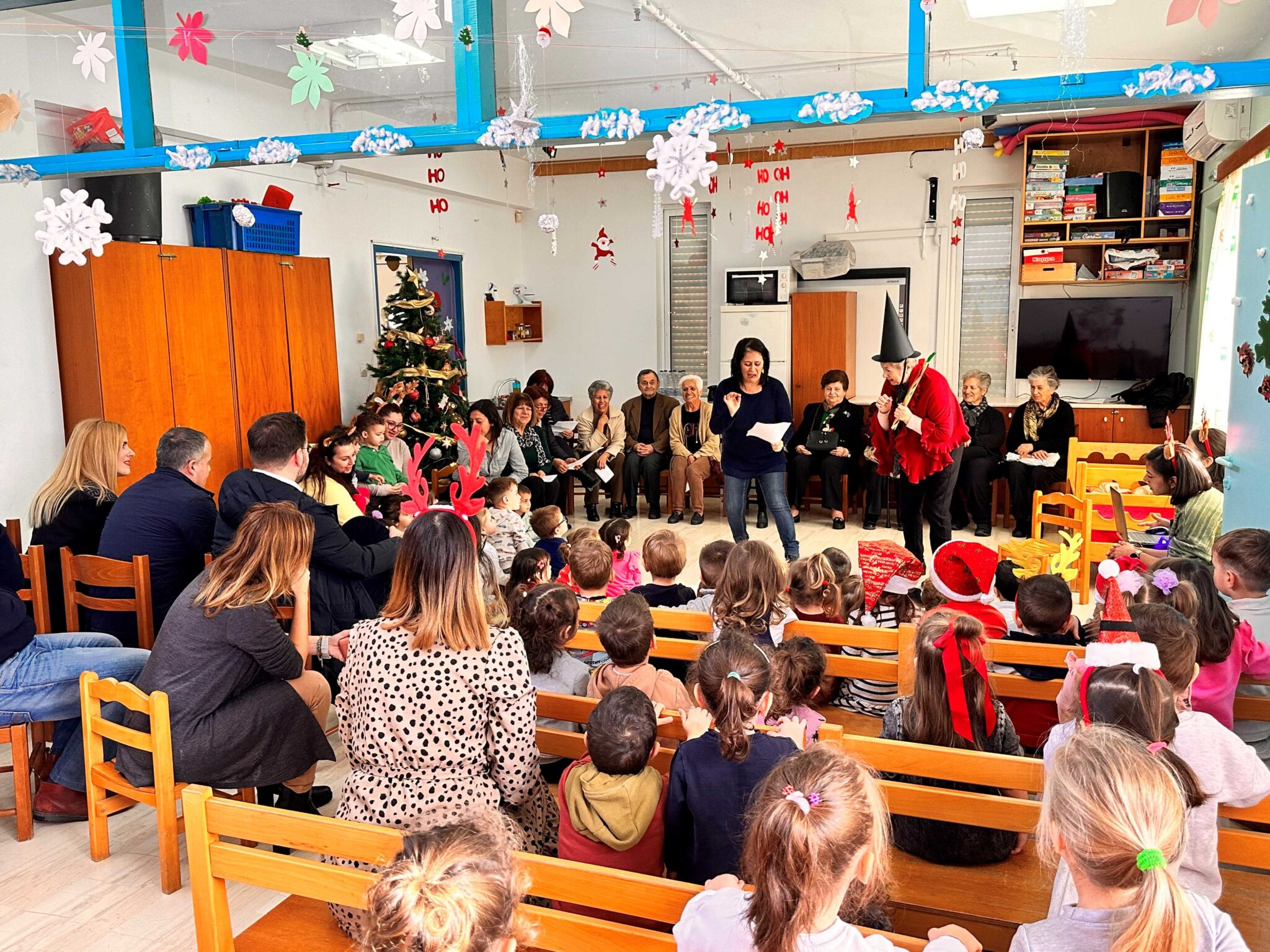 Από τη γιορτή φυσικά δεν μπορούσε να λείψει ο Άγιος Βασίλης που μαζί με το Δήμαρχο μοίρασαν τα δώρα σε όλα τα παιδιά.