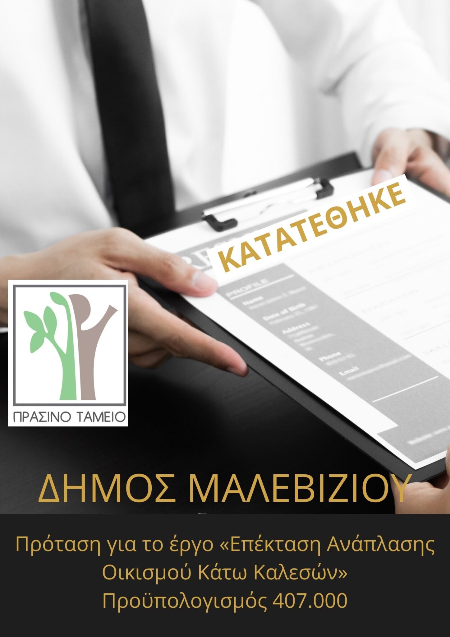 Τη χρηματοδότηση του έργου «Επέκταση Ανάπλασης Οικισμού Κάτω Καλεσών» από το Πράσινο Ταμείο διεκδικεί ο Δήμος Μαλεβιζίου μετά την απόφαση της Οικονομικής Επιτροπής.