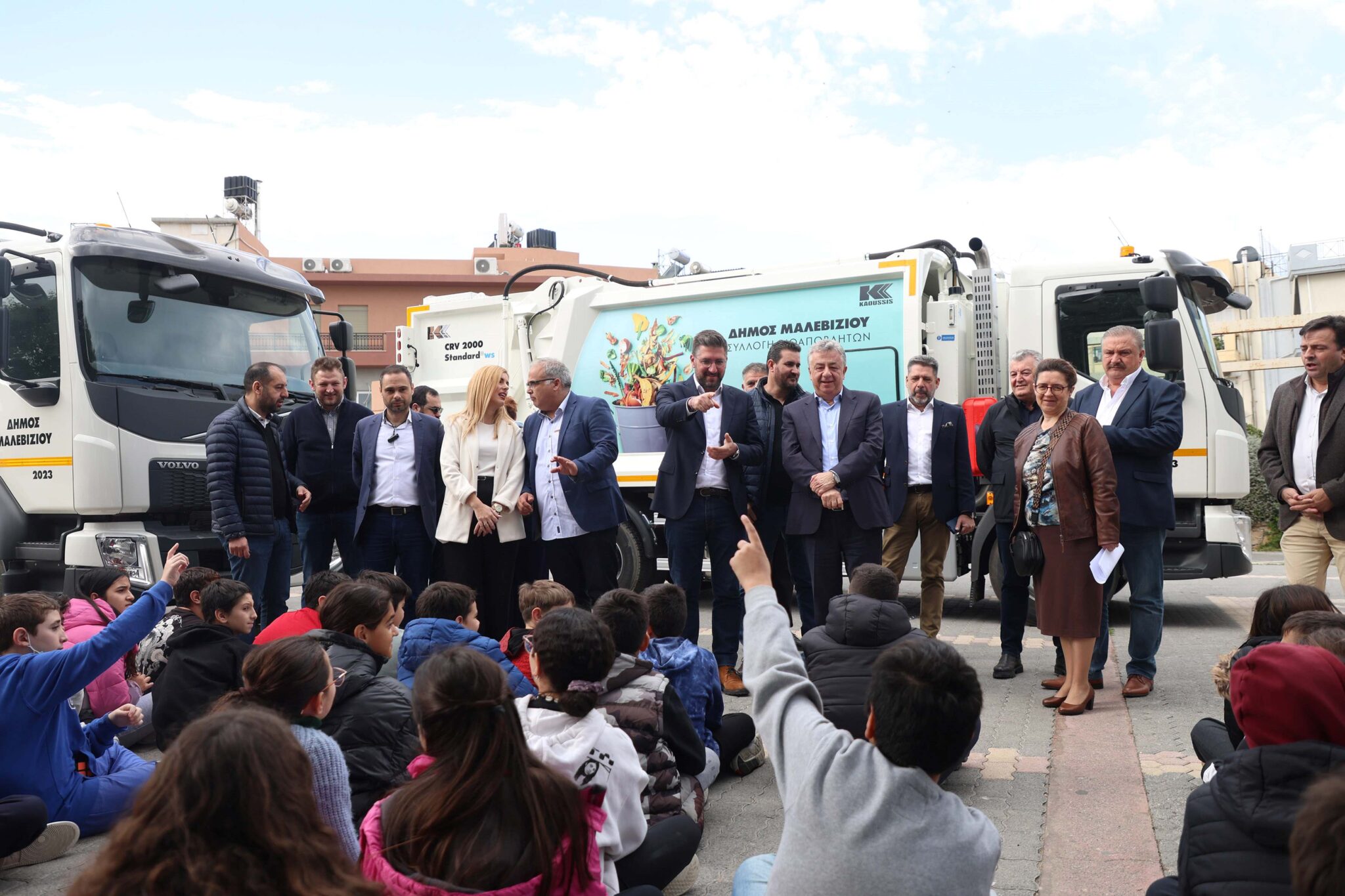 Παρουσία του Περιφερειάρχη Κρήτης Σταύρου Αρναουτάκη και του Προέδρου του ΕΣΔΑΚ Ζαχαρία Καλογεράκη έγινε η παραλαβή των δύο νέων απορριμματοφόρων για τη συλλογή οργανικών αποβλήτων από το Δήμο Μαλεβιζίου.