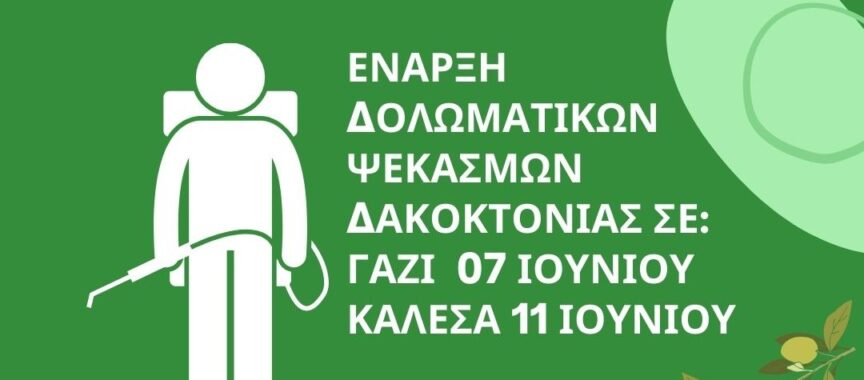 Την ερχόμενη Παρασκευή 7 Ιουνίου ξεκινά το πρόγραμμα δακοκτονίας στο Δήμο Μαλεβιζίου σύμφωνα με την ανακοίνωση της Δ/νσης Αγροτικής Ανάπτυξης Περιφερειακής Ενότητας Ηρακλείου.