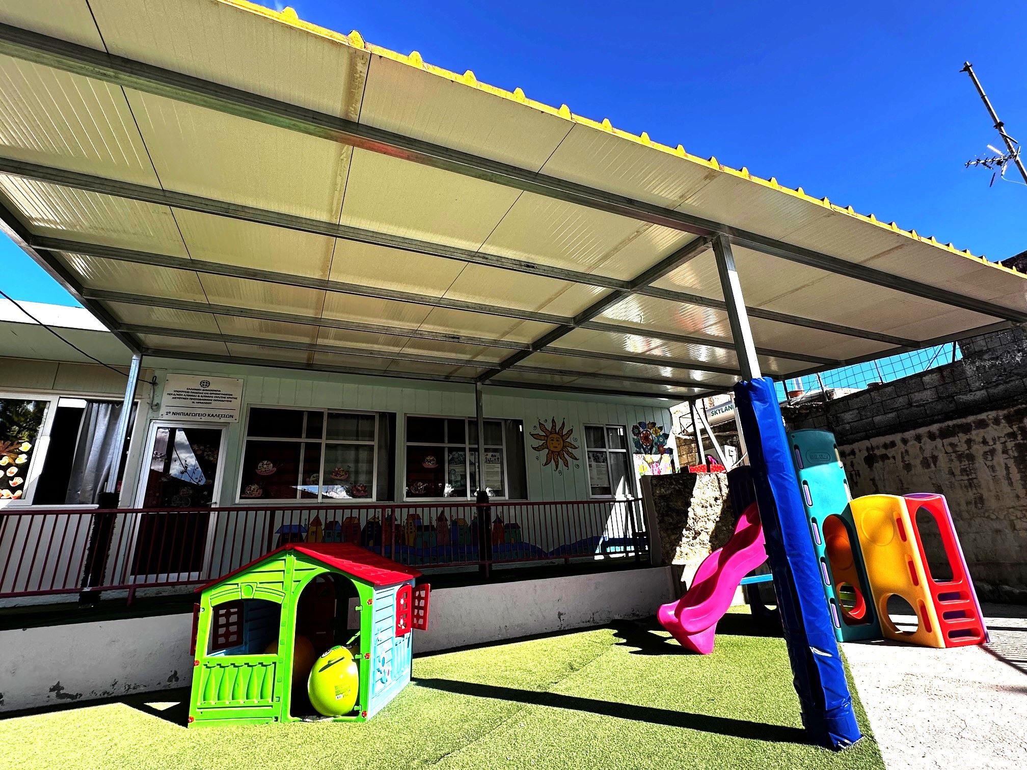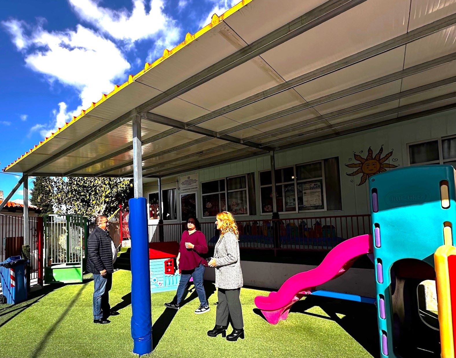 Η νέα αυτή υποδομή, που αποτελούσε αίτημα τόσο του συλλόγου γονέων όσο και των εκπαιδευτικών, προσφέρει ένα ασφαλές και προστατευμένο περιβάλλον για τις δραστηριότητες των νηπίων κατά τη διάρκεια του σχολικού προγράμματος, καθώς και κατά το διάλειμμα. Με την τοποθέτηση του στεγάστρου, τα παιδιά θα μπορούν πλέον να απολαμβάνουν το παιχνίδι και τις εξωτερικές δραστηριότητες ανεξαρτήτως καιρού.