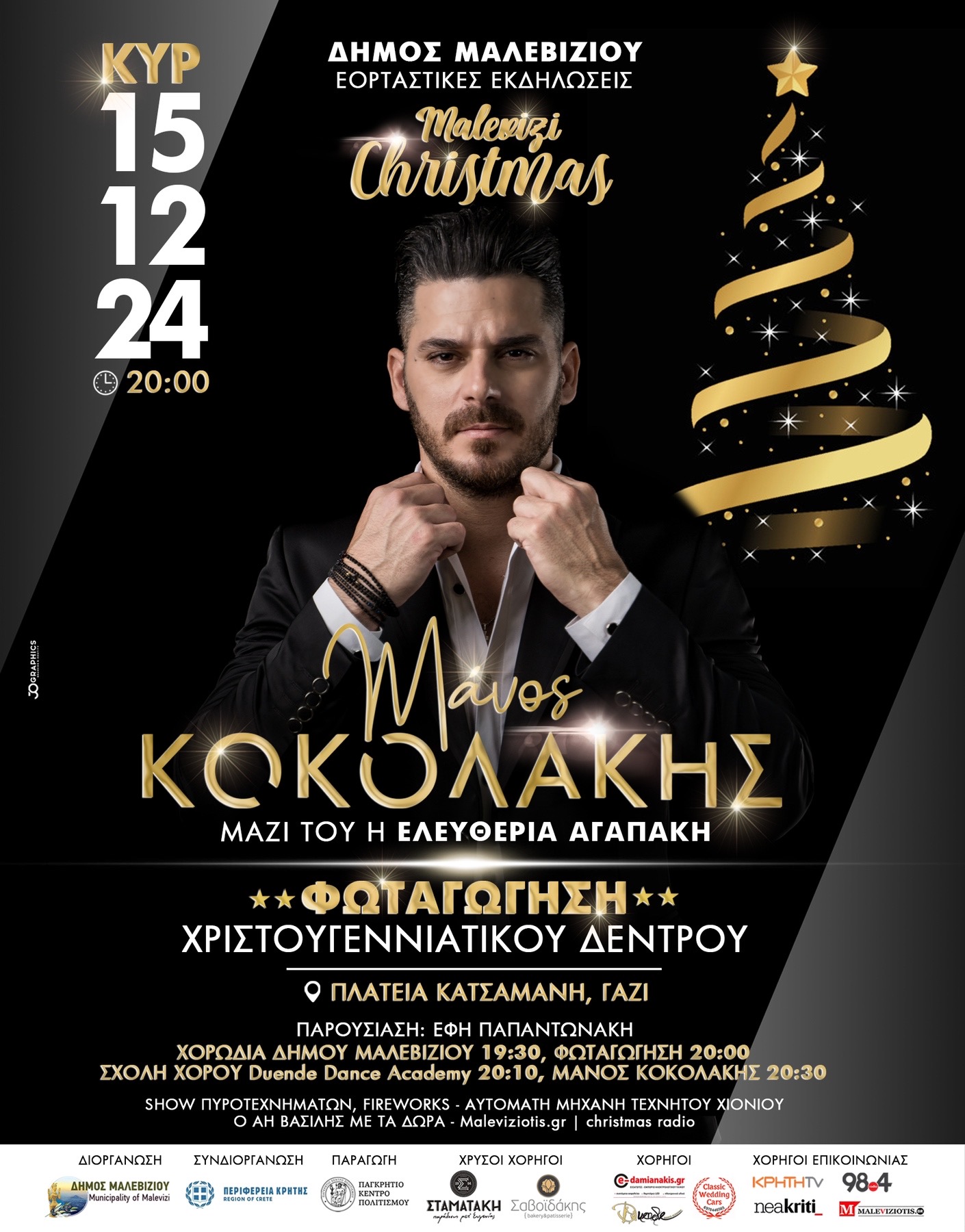 Ο Δήμος Μαλεβιζίου υποδέχεται την πιο μαγική εποχή του χρόνου με τη φωταγώγηση του Χριστουγεννιάτικου Δέντρου, την Κυριακή 15 Δεκεμβρίου, στην κεντρική πλατεία του Γαζίου.