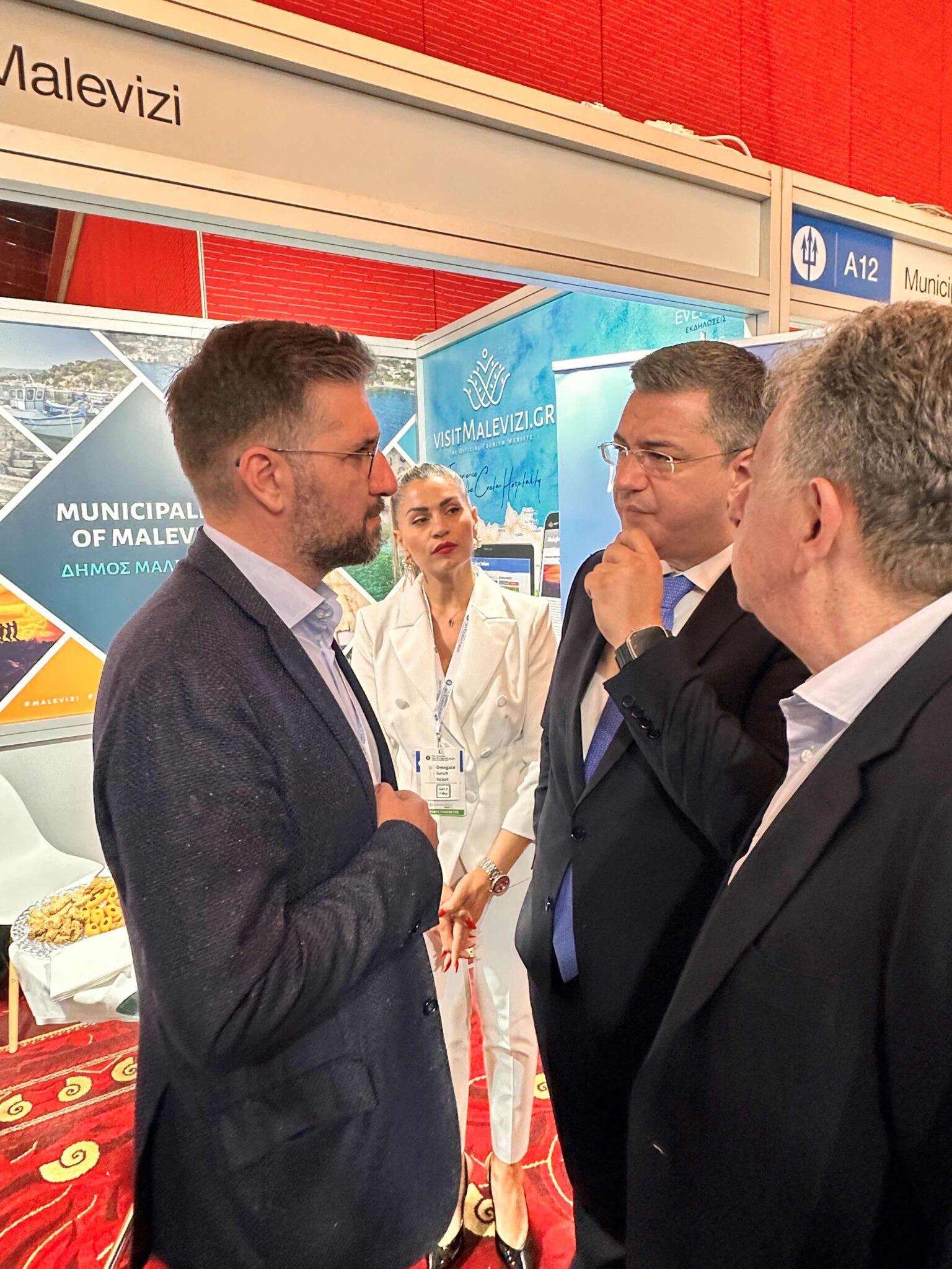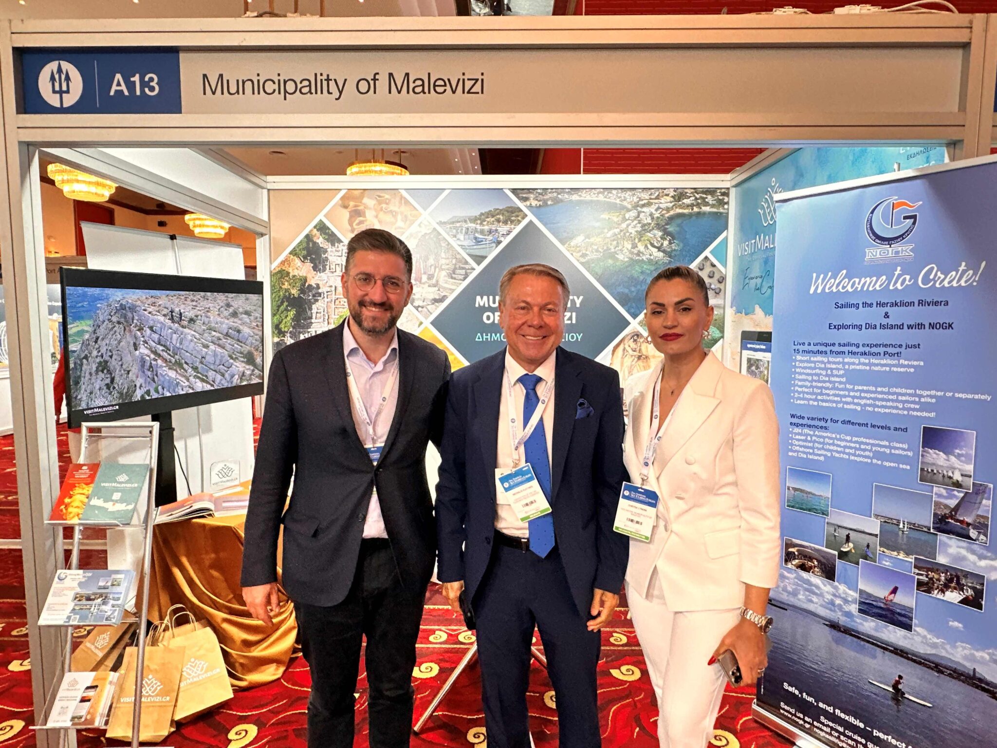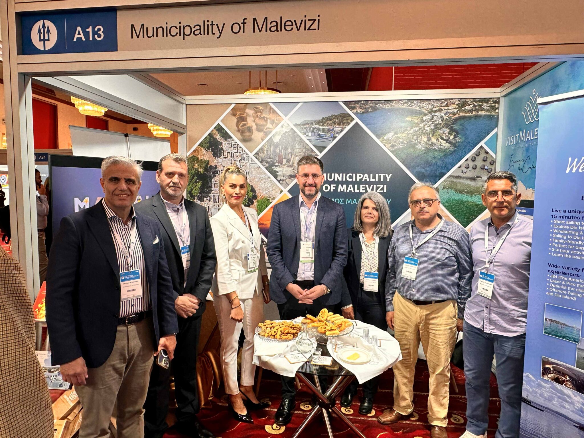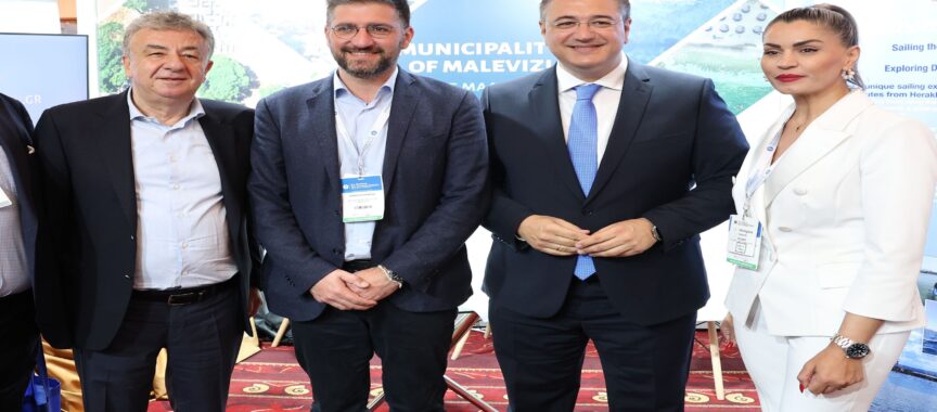 Ο Δήμαρχος Μαλεβιζίου, Μενέλαος Μποκέας, υποδέχτηκε τον Ευρωπαίο Επίτροπο Μεταφορών και Τουρισμού, Απόστολο Τζιτζικώστα, καθώς και τον Περιφερειάρχη Κρήτης, Σταύρο Αρναουτάκη, στο περίπτερο του Δήμου Μαλεβιζίου στο 8ο Φόρουμ Θαλάσσιου Τουρισμού “Ποσειδώνια”, που πραγματοποιείται για πρώτη φορά στην Κρήτη.
