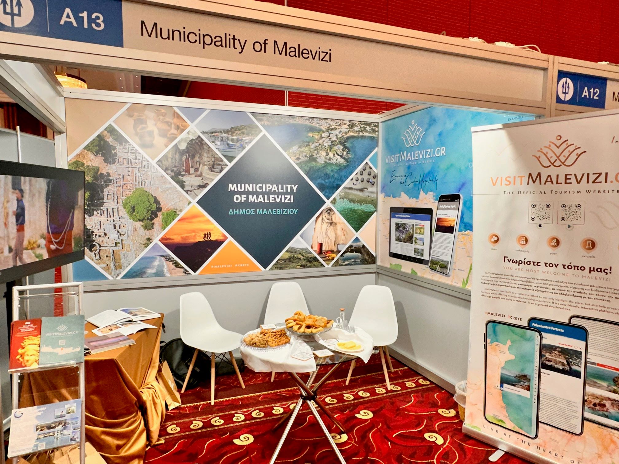 Στο περίπτερο του Δήμου, την επιμέλεια του οποίου είχε η Αντιδήμαρχος Τουρισμού και Πολιτισμού Χρύσα Λυρώνη, οι επισκέπτες έχουν τη δυνατότητα να γνωρίσουν, μέσα από οπτικοακουστικό και έντυπο υλικό, τις παραλίες, τα γραφικά χωριά, τα πεζοπορικά μονοπάτια, τους παραδοσιακούς οικισμούς και τις αυθεντικές γαστρονομικές εμπειρίες που προσφέρει το Μαλεβίζι.