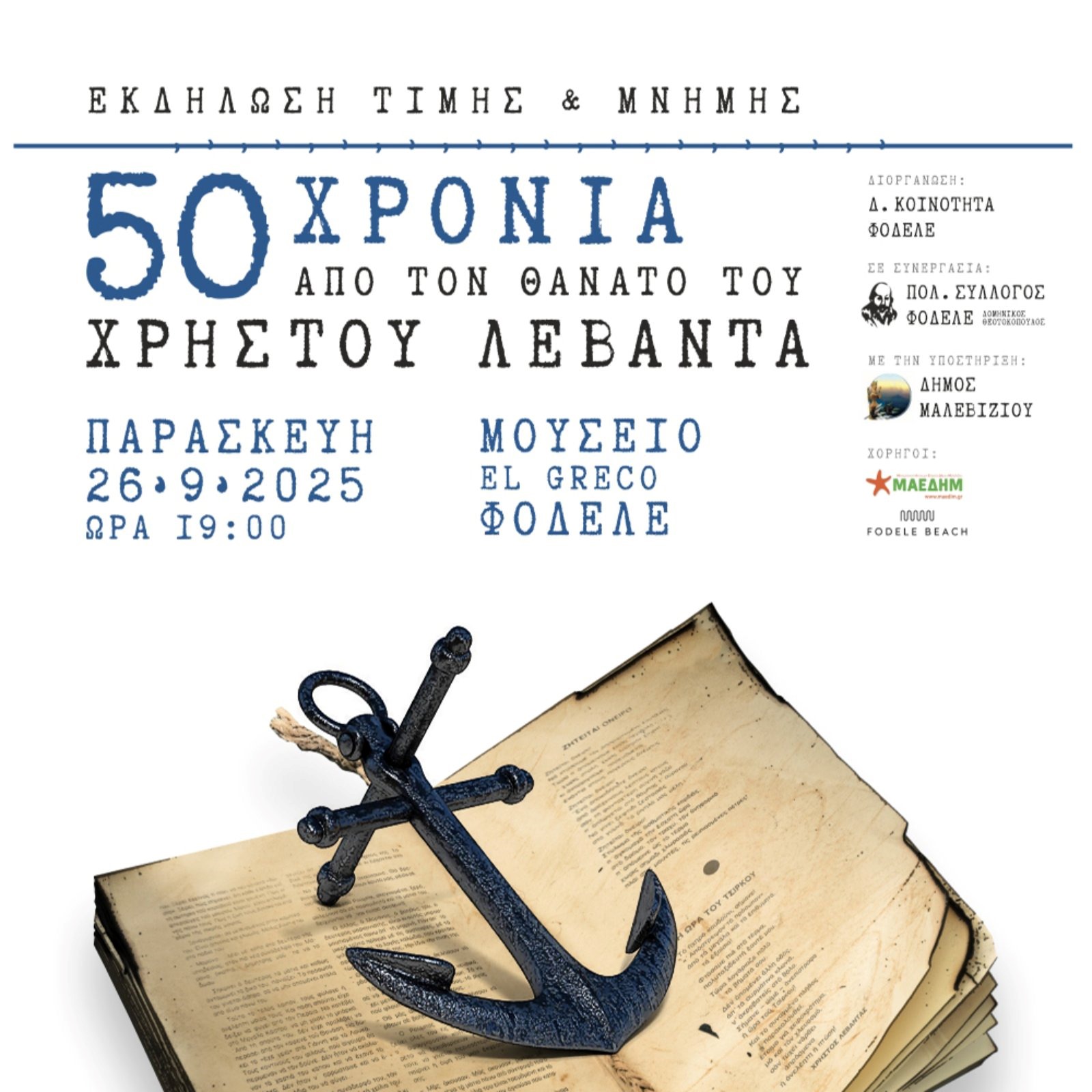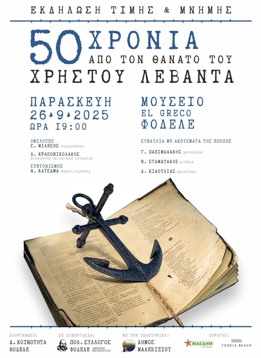 Η εκδήλωση θα πραγματοποιηθεί την Παρασκευή 26 Σεπτεμβρίου, στις 7:00 μ.μ., στον εξωτερικό χώρο του Μουσείου Δομήνικος Θεοτοκόπουλος στο Φόδελε.