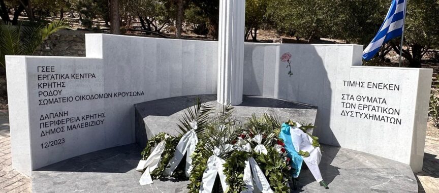 Ο Δήμος Μαλεβιζίου σε συνεργασία με τα Εργατικά Κέντρα Κρήτης και Ρόδου και το Σωματείο Οικοδόμων Κρουσώνα και με   την στήριξη της Περιφέρειας Κρήτης, πραγματοποιούν  εκδήλωση   τιμής   και   μνήμης   για   τα   θύματα   των   Εργατικών Δυστυχημάτων.