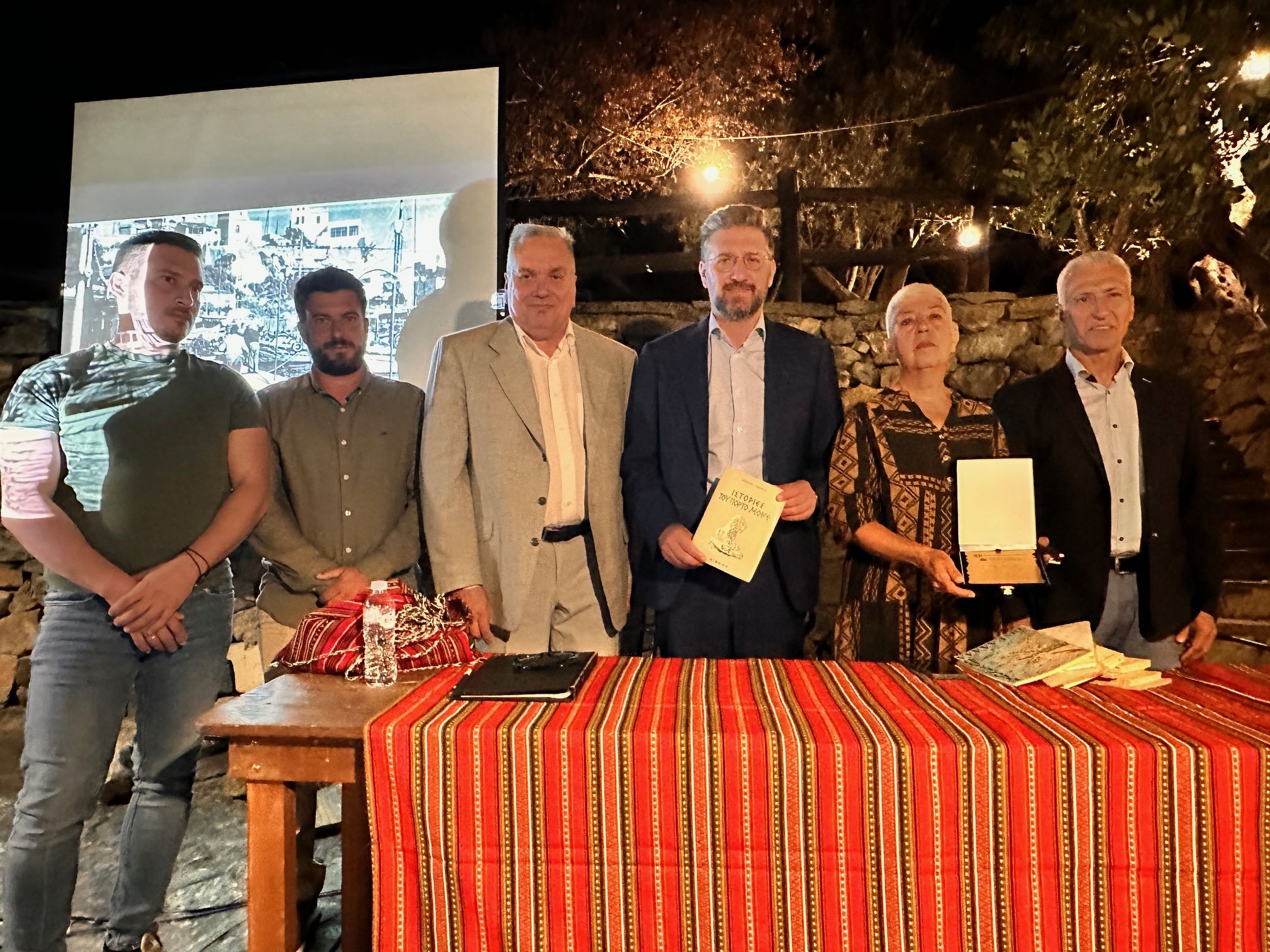 Ξεχωριστή στιγμή της βραδιάς αποτέλεσε η προσφορά έργων του Χρήστου Λεβάντα από τον Δημήτρη Κρασονικολάκη, καθώς και ενός χειρόγραφου του συγγραφέα Γιώργου Μετσόλη, που αναφέρεται στη ζωή και το έργο του Λεβάντα, από τον Στέφανο Μίλεση.
