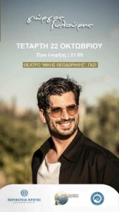 Μία ξεχωριστή βραδιά υπόσχεται ο Γιώργος Ξυλούρης στη συναυλία που θα πραγματοποιηθεί στο ανοιχτό θέατρο Μίκης Θεοδωράκης στο Γάζι την Τετάρτη 22 Οκτωβρίου.