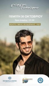 Στις 30 Οκτωβρίου μεταφέρεται η συναυλία του Γιώργου Ξυλούρη στο Γάζι
