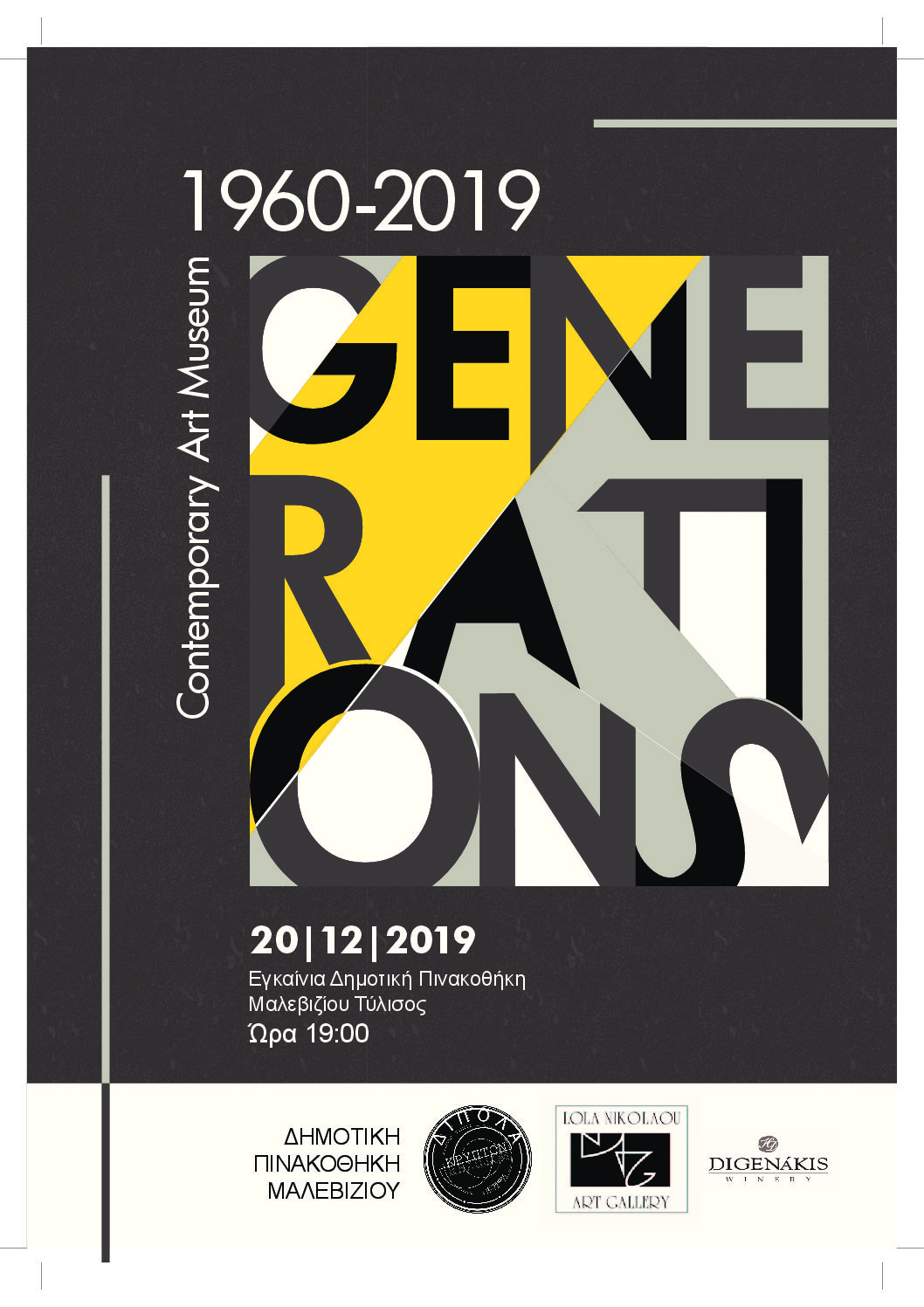 Πρόσκληση Εγκαινίων Έκθεσης Σύγχρονης Τέχνης GENERATIONS 1960-2019...