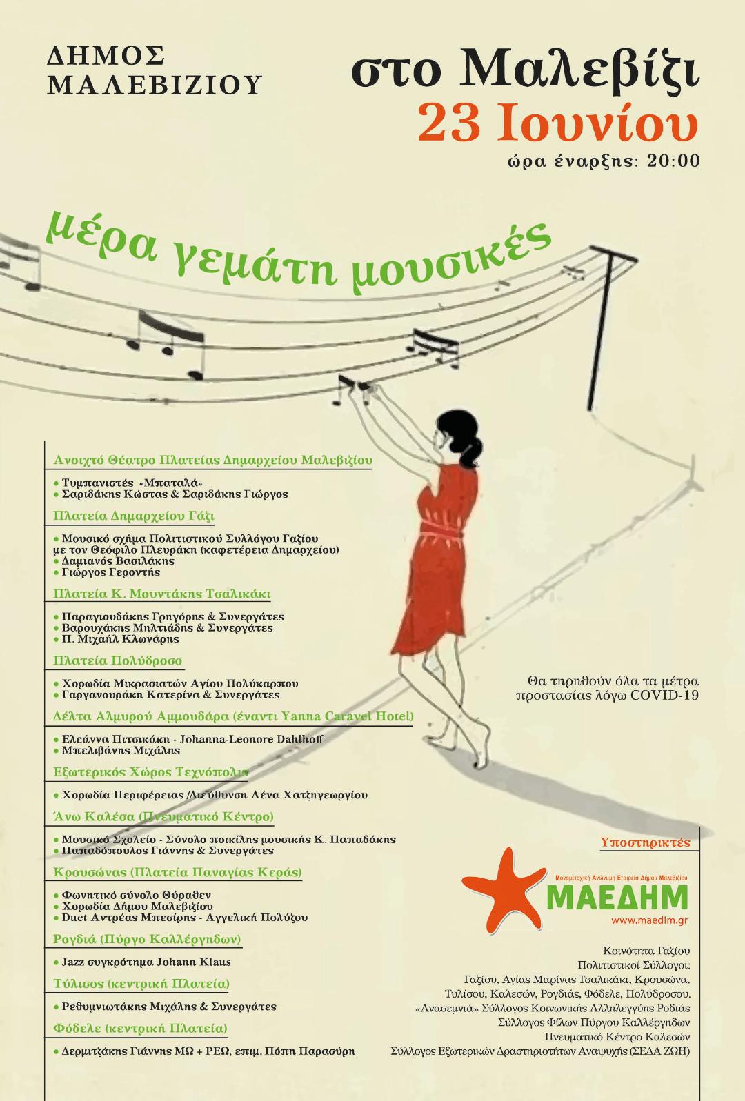Μέρα γεμάτη Μουσικές θα είναι η Τετάρτη στο Δήμο Μαλεβιζίου. Μία μέρα που...