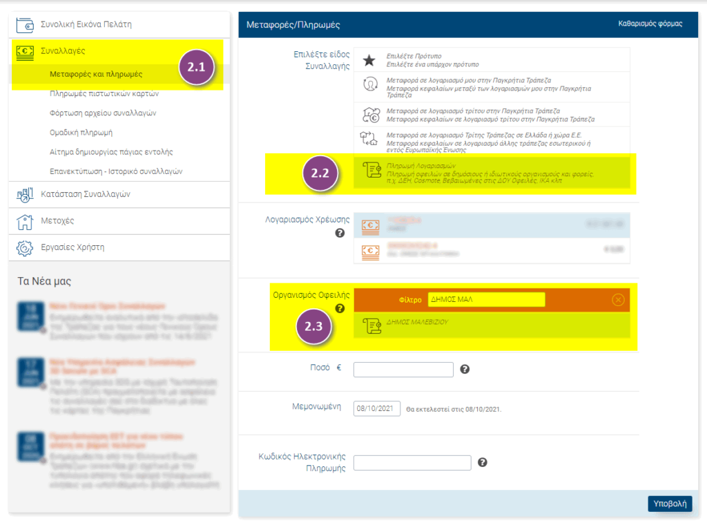 - Για να ενημερωθείτε για το κόστος των συναλλαγών πατήστε εδώ.