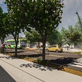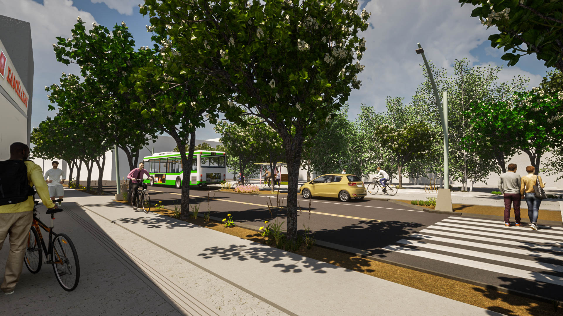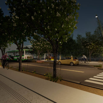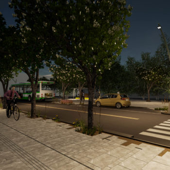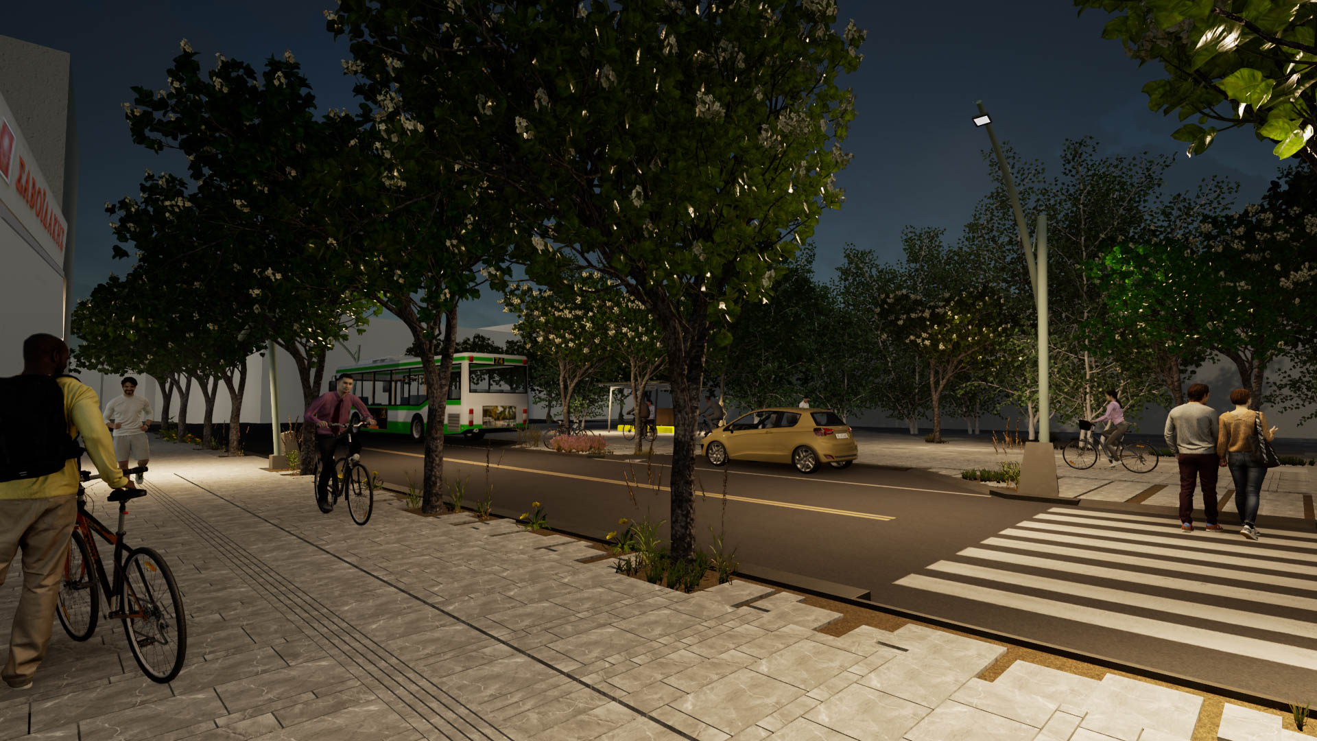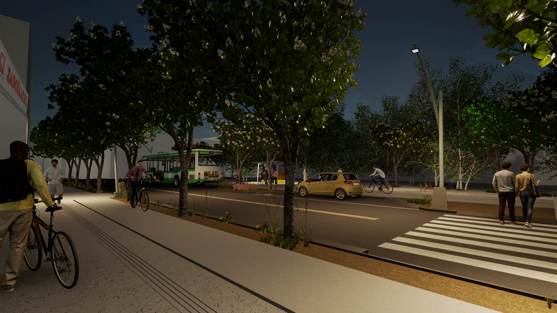 - Ποδηλατόδρομους μονής κατεύθυνσης (μονές λωρίδες ποδηλάτου) στο ύψος των πεζοδρομίων εκατέρωθεν της οδού, πλάτους 1,5 μ. (ο μικρού πλάτους αυτός ποδηλατόδρομος δίπλα στο πεζοδρόμιο, εάν στο μέλλον δεν έχει ποδήλατα θα μπορεί να γίνει πεζοδρόμιο).
