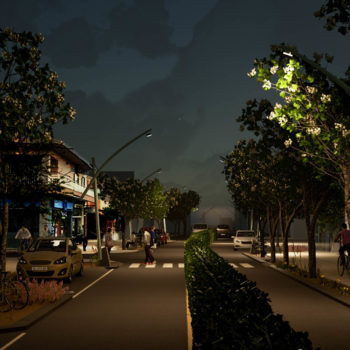 - Τοποθέτηση ιστών φωτισμού για το οδόστρωμα -σύμφωνα με τις ισχύουσες προδιαγραφές- και επί των ιδίων, τοποθέτηση δευτερευόντων προβολέων για ειδικό φωτισμό των πεζοδρομίων σε απόσταση 22 μ. περίπου και εναλλάξ στα απέναντι πεζοδρόμια (με μέση απόσταση τα 11μ.)