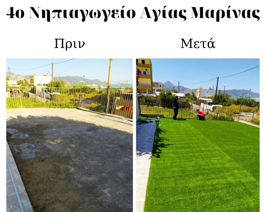 Στα Καλέσα έγιναν σειρά εργασιών στην αυλή ενώ τοποθετήθηκε και τάπητας για την προστασία των μικρών μαθητών, στο νηπιαγωγείο στο Καβροχώρι ολοκληρώθηκαν οι εργασίες ανακαίνισης με την τοποθέτηση νέων επίπλων και ηλεκτρονικών υπολογιστών, ενώ στο 3ο Νηπιαγωγείο Αγίας Μαρίνας τοποθετήθηκε μία αποθήκη και τέλος στο 1ο & 3ο Νηπιαγωγείο τοποθετήθηκε ένα στέγαστρο στην είσοδο των τάξεων.