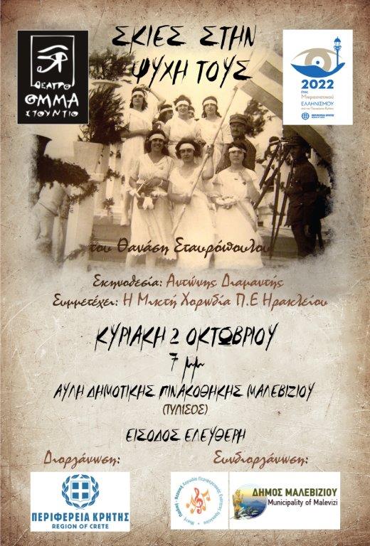 Η παράσταση ήταν ενταγμένη στον κύκλο των επετειακών εκδηλώσεων από τα 100 χρόνια από τη Μικρασιατική Καταστροφή, ενώ το κείμενο του έργου είχε γραφτεί από τον συγγραφέα Θανάση Σπυρόπουλο ειδικά για την παράσταση.